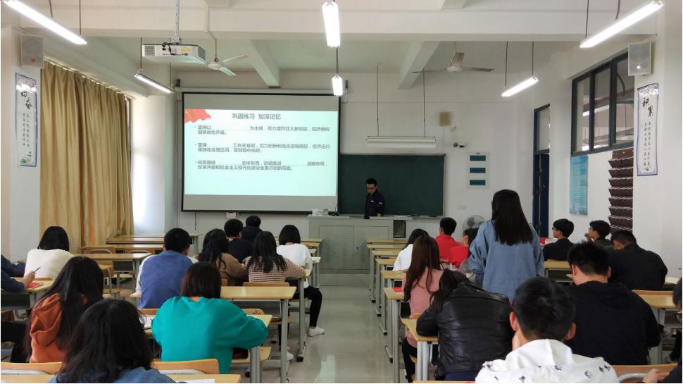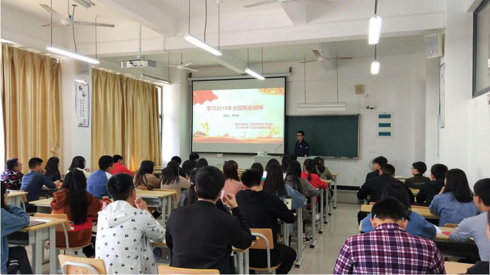 会上,廖文旭同志以“两会”是什么?2018年全国“两会”又是什么?两个问题为切入点,从四个方面与支部成员进行交流学习,第一个方面:2018两会基本概述;第二个方面:2018两会八大看点;第三个方面:政府工作报告节选;第四个方面:奋进新时代,筑梦新征徎。在整个交流学习的过程中有提问、支部成员朗读、巩固练习等环节,学习气氛良好,较好地学习了2018年全国两会精神。