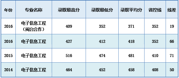电子信息工程专业录取分数线